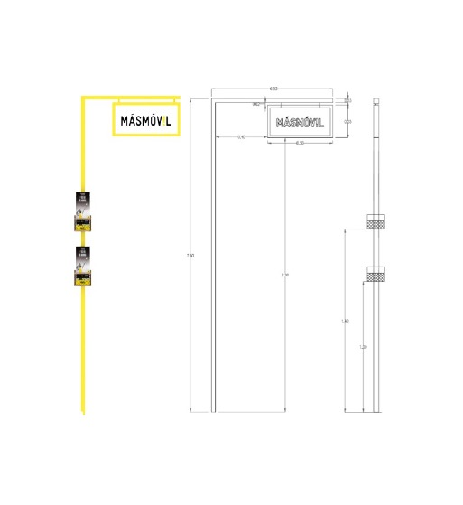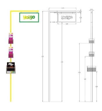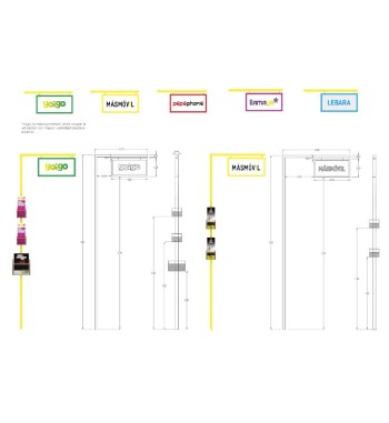 -Marco de banderolas de 2x3 cm de grosor lacados en color corporativo, según la marca. Medidas 50x25 cm.